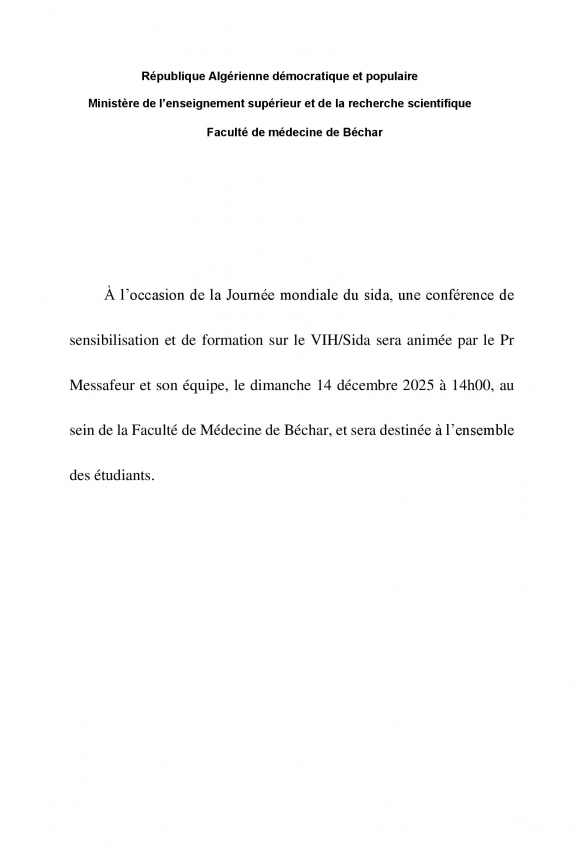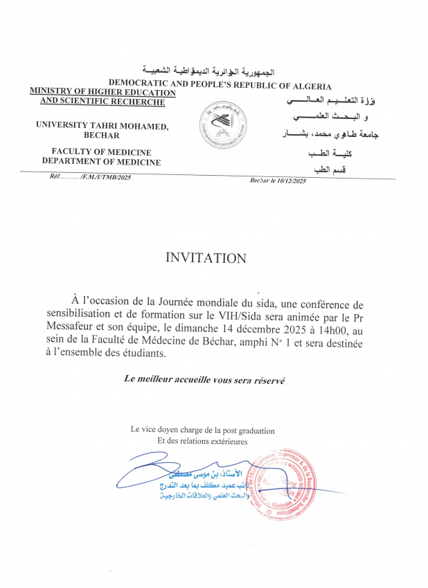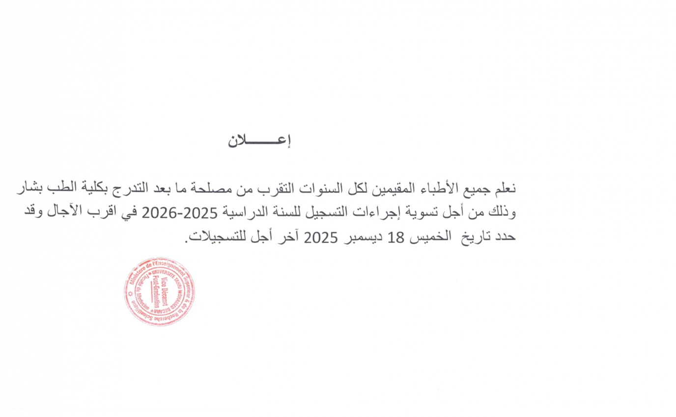 إستئناف الدراسة كلية الطب جامعة طاهري محمد بشار