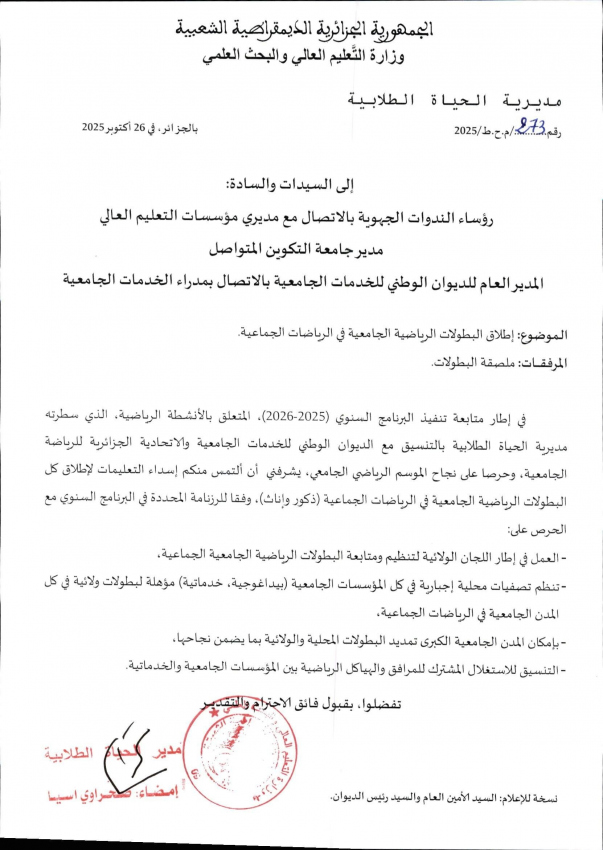 05/11/2025 - إطلاق البطولات الرياضية الجامعية في الرياضات الجامعية
