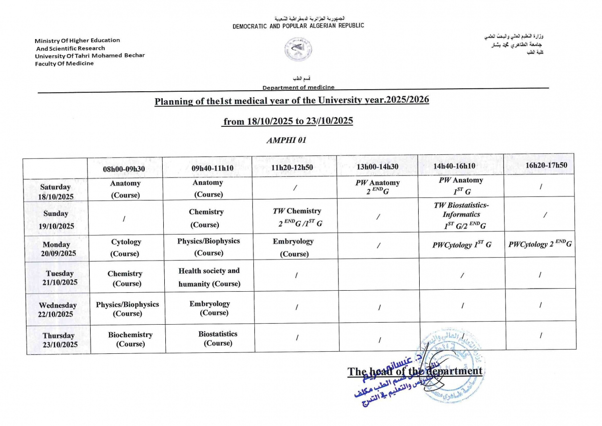 إستعمـــال الزمن السنة أولـــى طب