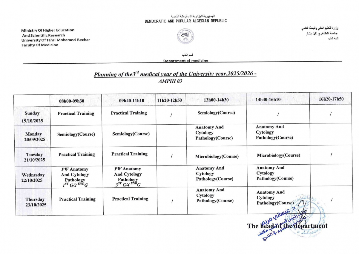 إستعمـــال الزمن السنة الثالثة طب