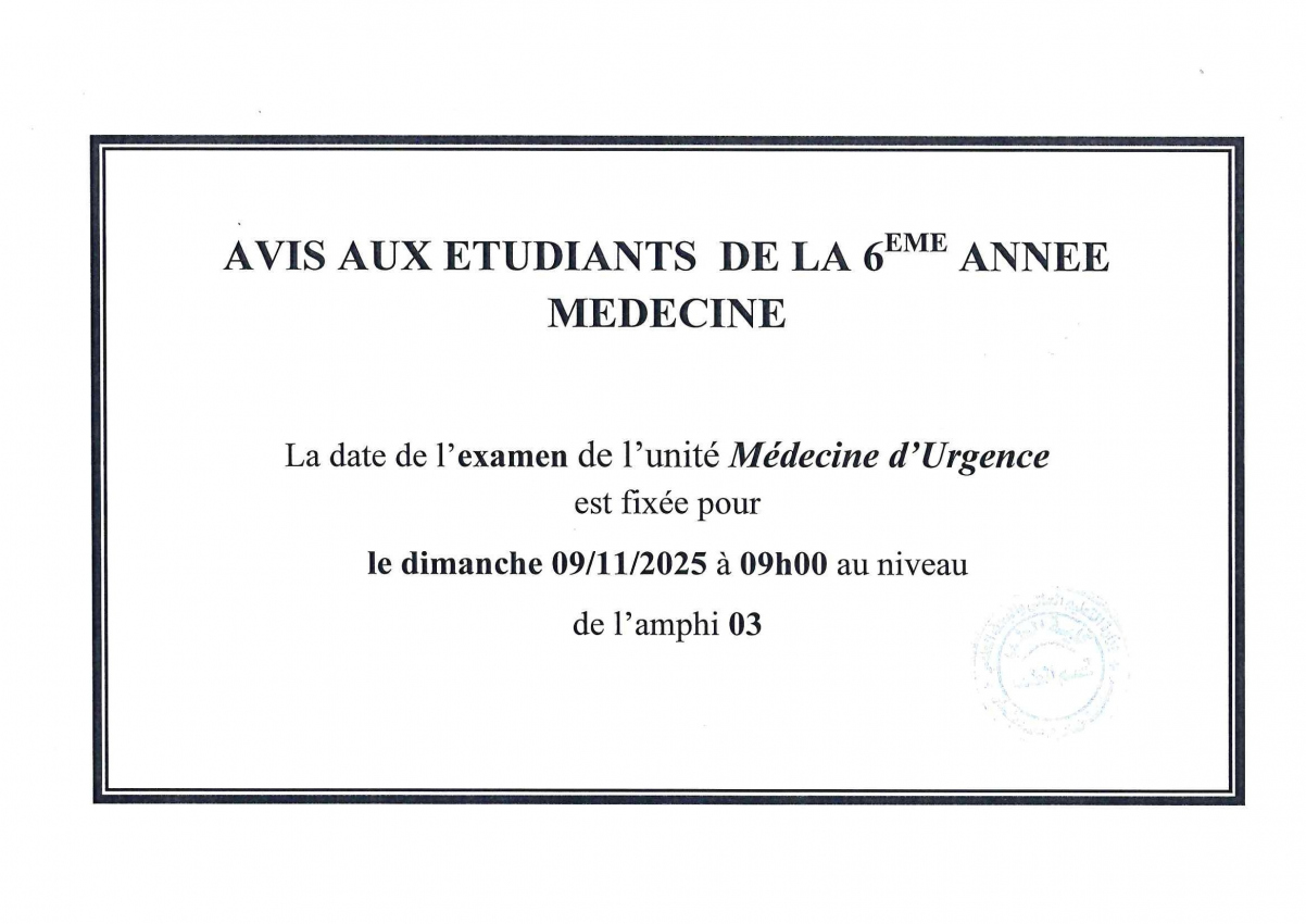 examen de l'unité Médecine d'Urgence