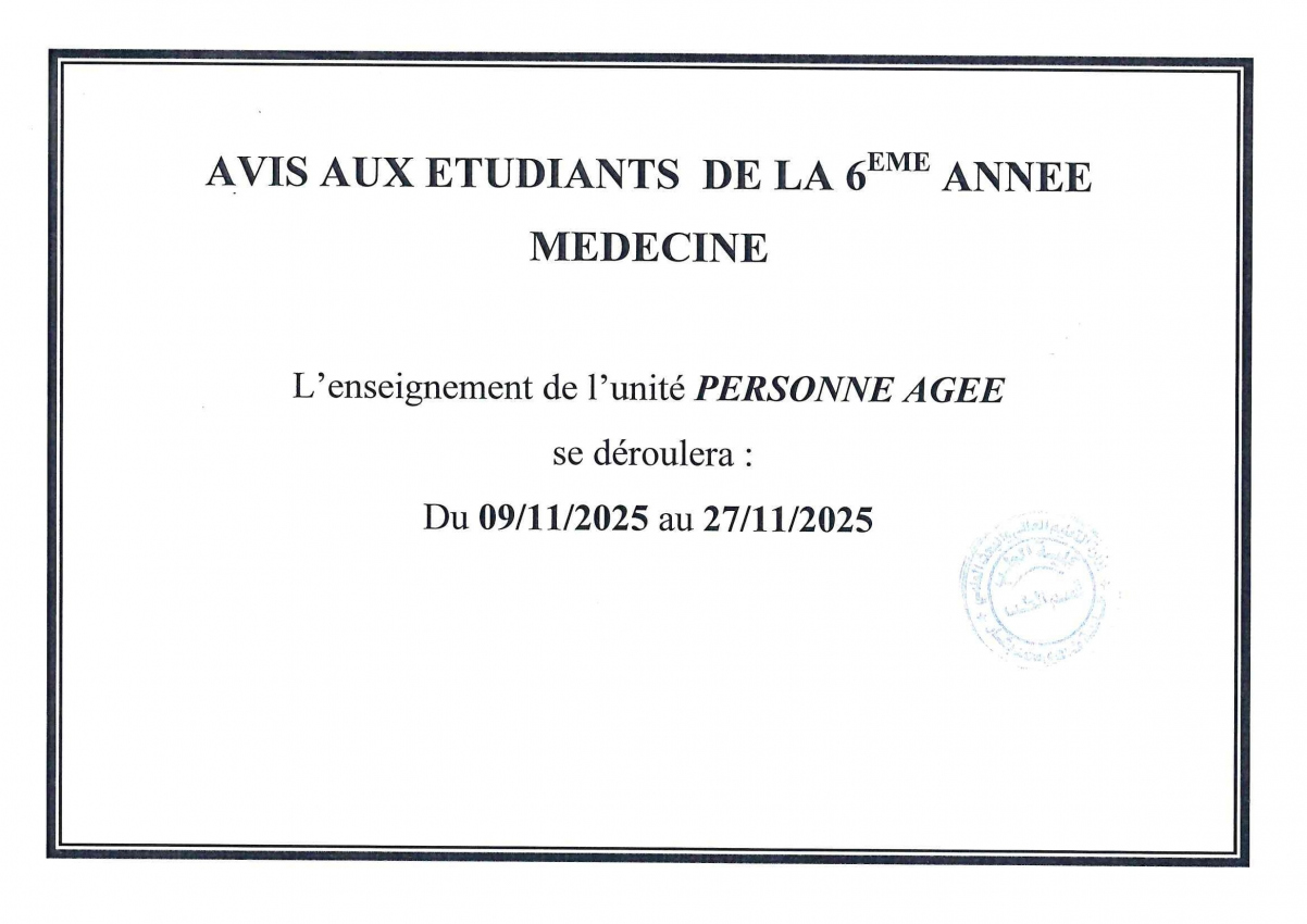 L'enseignement de l'unité PERSONNE AGEE