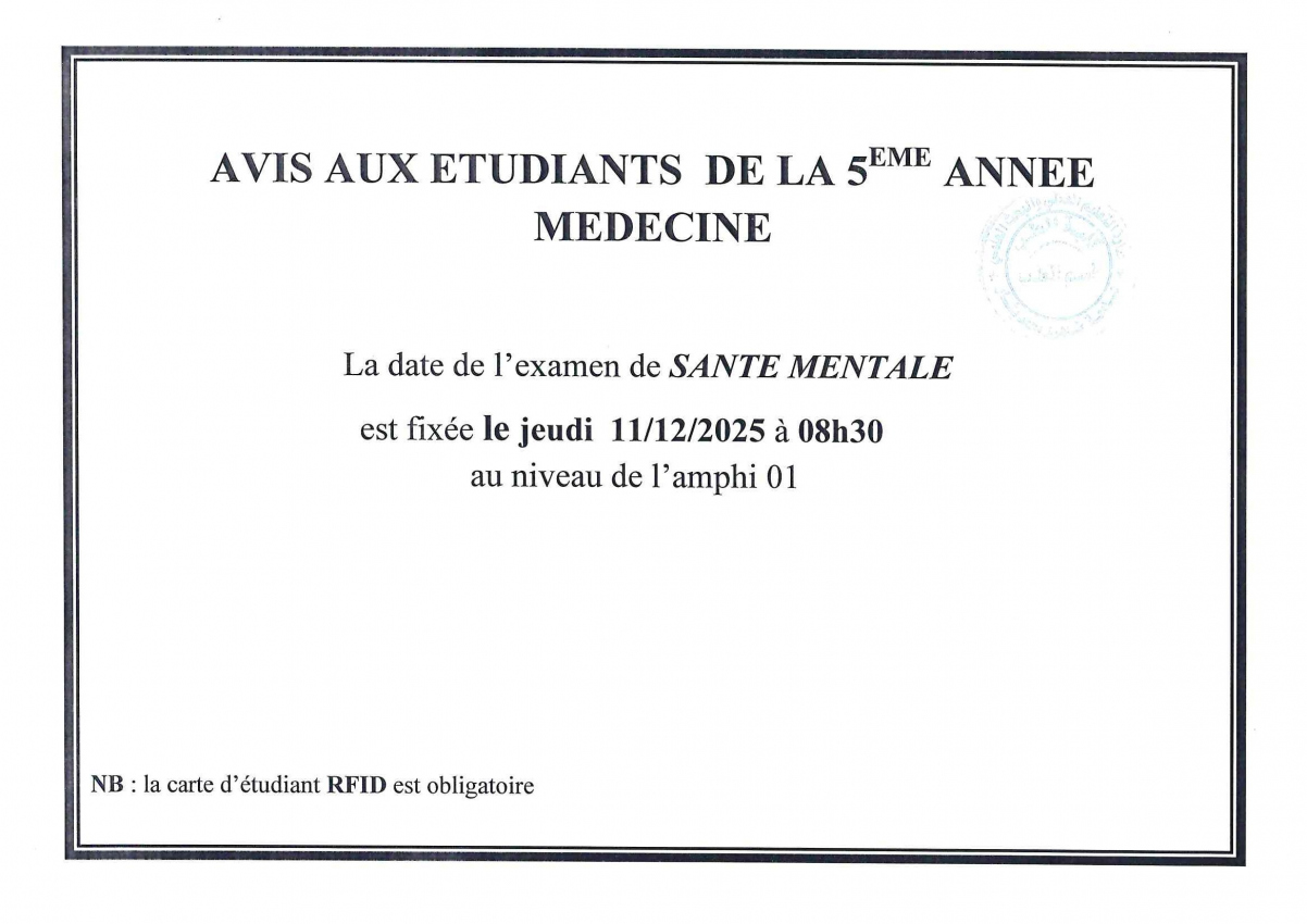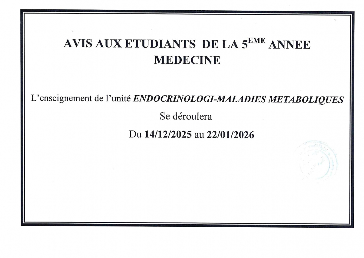 AVIS AUX ETUDIANTS DE LA 5 EME ANNEE