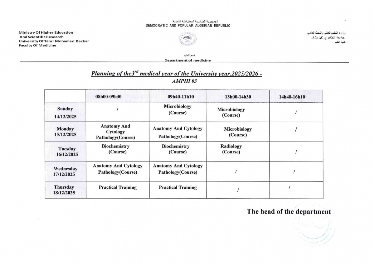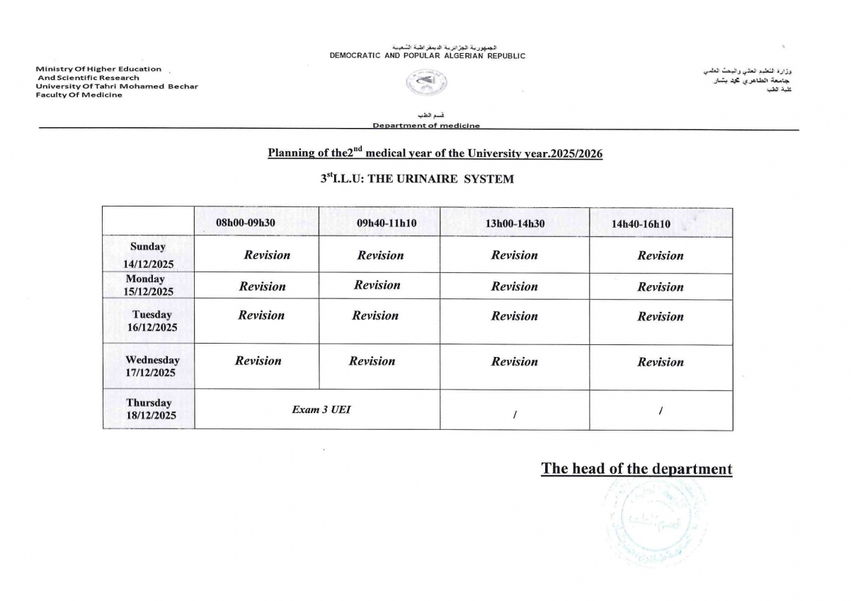 إستعمال الزمن سنة الثالثة طب